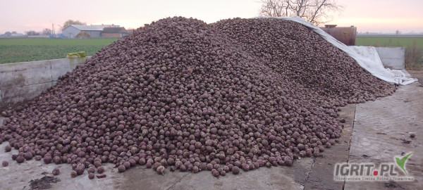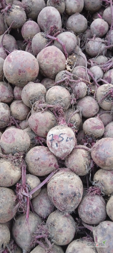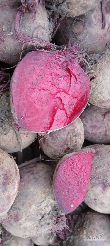 OpisTOWAR HANDLOWY na półkę. Sprzedam buraczek czerwony MONTY z późnego siewu kaliber 5-10cm. Około 50t. Soczysty i wybarwiony. Towar handlowy. Preferowany luz na wanne.