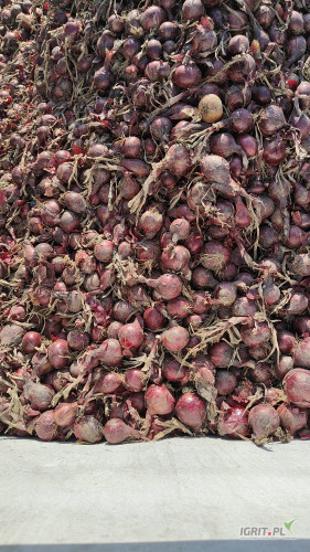 Cebula CZERWONA na pakowanie i obieranie z dymki Red Baron 75%6+. Import, ilości tirowe, dostawa do klienta w całej Polsce.
