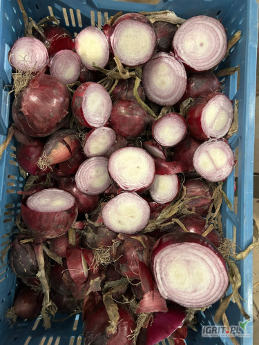 Cebula CZERWONA z dymki. Na pakowanie i do obieranie. Ilości tirowe. Dostawa do klienta. Import