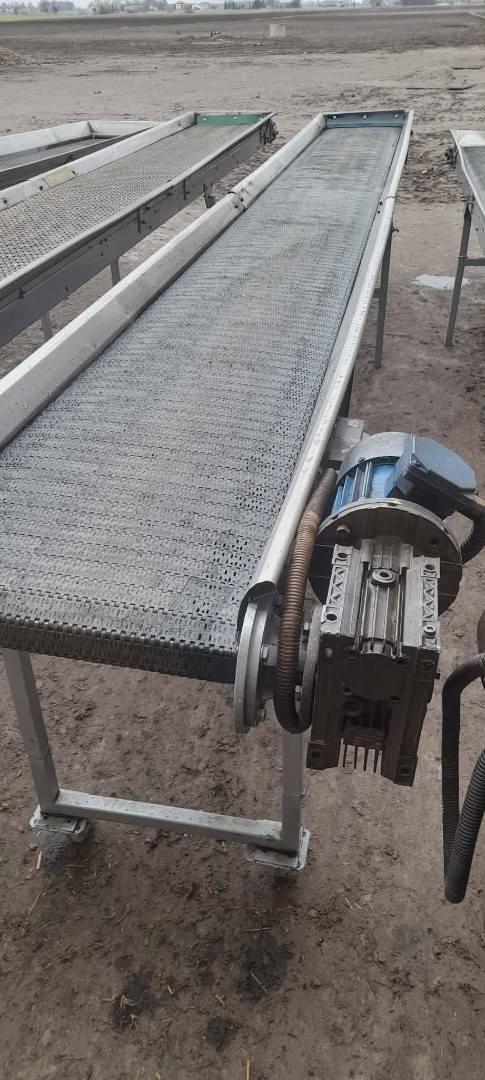 OpisDo cebuli sprzedam podajnik długość 150 cm. szerokość 40 cm cena 2000 zł . Stół przebierczy długość 430 cm. szerokość 40 cm . cena 3600 zł Stan bardzo dobry , napęd motoreduktor taśmy modułowe tal. 605 591 610