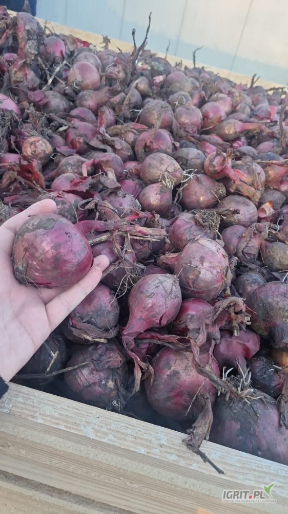 Sprzedam cebulę czerwoną na worek 4,5-8 i na obieranie 4,5-10. Ilości tirowe, certyfikaty. Wszystko fazor z przechowalni nie przemarznięta.