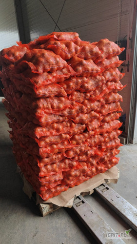 Sprzedam cebule żółtą kal. 5-8, worek 10kg. Ilości tir i paletowe. Ładna łuska.