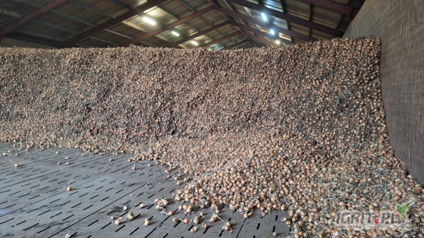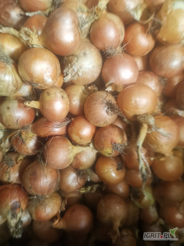 Suchą, zdrową , cebulę na worek z Holandii sprzedam . Cebula z cienkim zaschnietym szczypiorem.