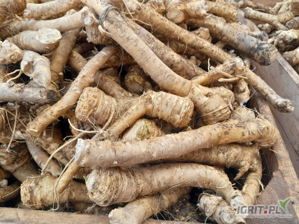 Sprzedam chrzan klasa pierwsza. Dostępna ilość 10t. lub więcej. Opakowanie big bag, skrzyniopaleta bądź luzem. Możliwy dowóz na miejsce. Cena 12.5zł
