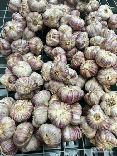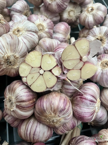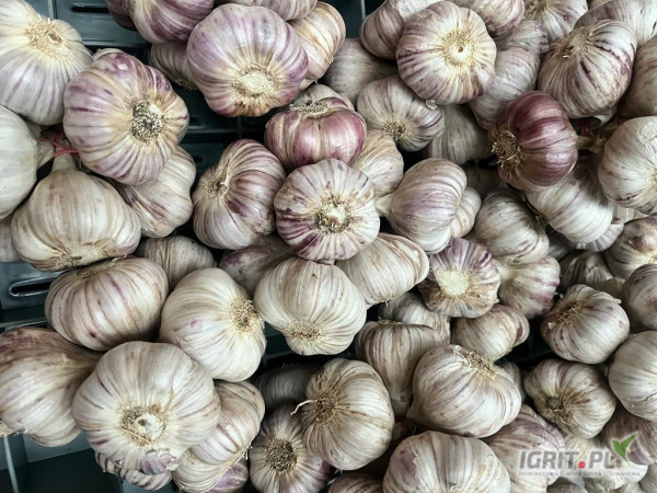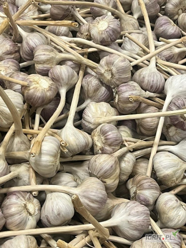 Umieszczony w komorach jeszcze w okresie letnim, czyli przed rozpoczęciem wegetacji co oznacza że nie ma kiełka. Czosnek jest już oczyszczony i spakowany w pęczki we workach raszlowych.