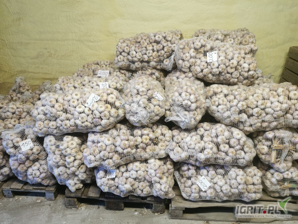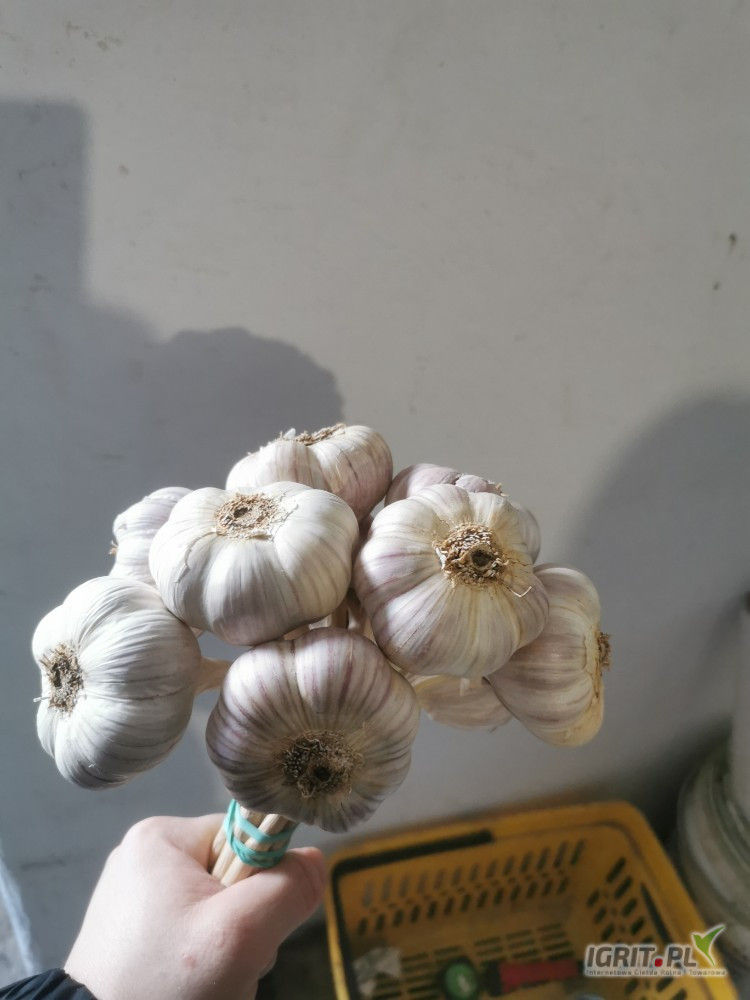 Sprzedam czosnek polski z chłodni. Czosnek bardzo dobrej jakości, nie rośnie, twardy, bez kiełka. Pęczek 10 szt. Przy sprzedaży hurtowej możliwość negocjacji.