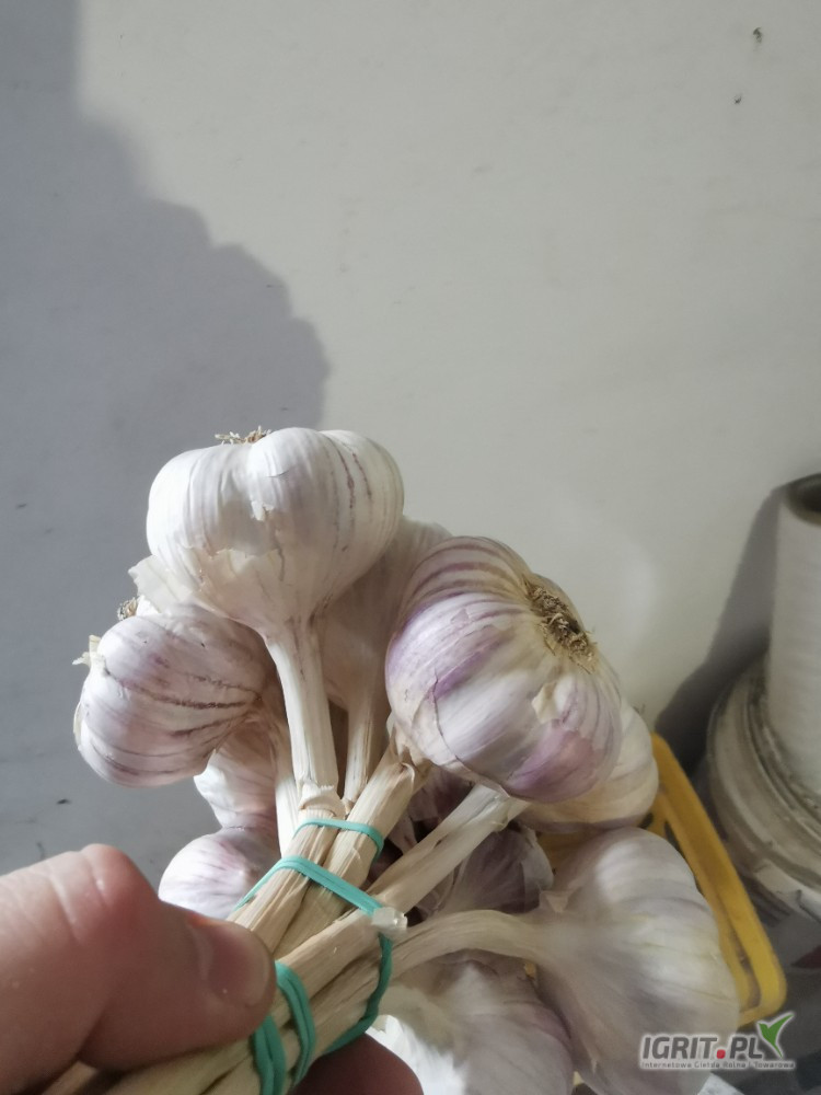 Sprzedam czosnek polski z chłodni. Czosnek bardzo dobrej jakości, nie rośnie, twardy, bez kiełka. Pęczek 10 szt. Przy sprzedaży hurtowej możliwość negocjacji.