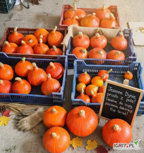 Sprzedam dynię Hokkaido – od sztuki po hurt 20 ton. Dynia idealna do zup, kremów, przetworów oraz sprzedaży w sklepach i na bazarach.