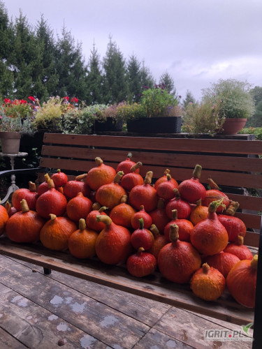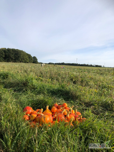 Sprzedam dynię Hokkaido Uchiki Kuri , kaliber od 0,5 do 1,7 . Ekologiczna z certyfikatem . Ilość ok 1tona.