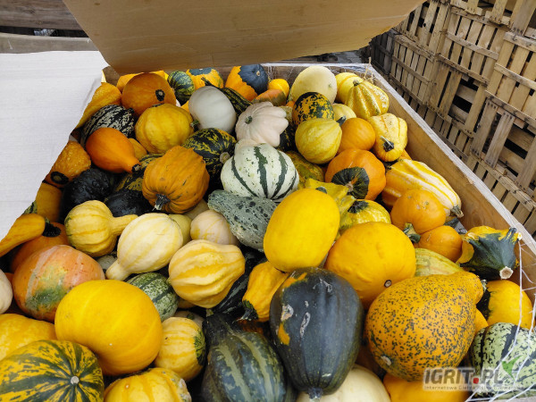 OpisWitam, sprzedam około 10-12tys sztuk dyni ozdobnej, różne ciekawe kolory i kształty. Dynię są myte. Możliwość transportu cena 1,3zł sztuka zależnie od ilości.