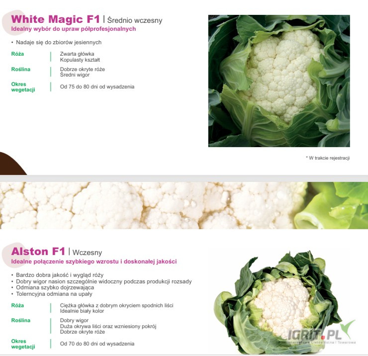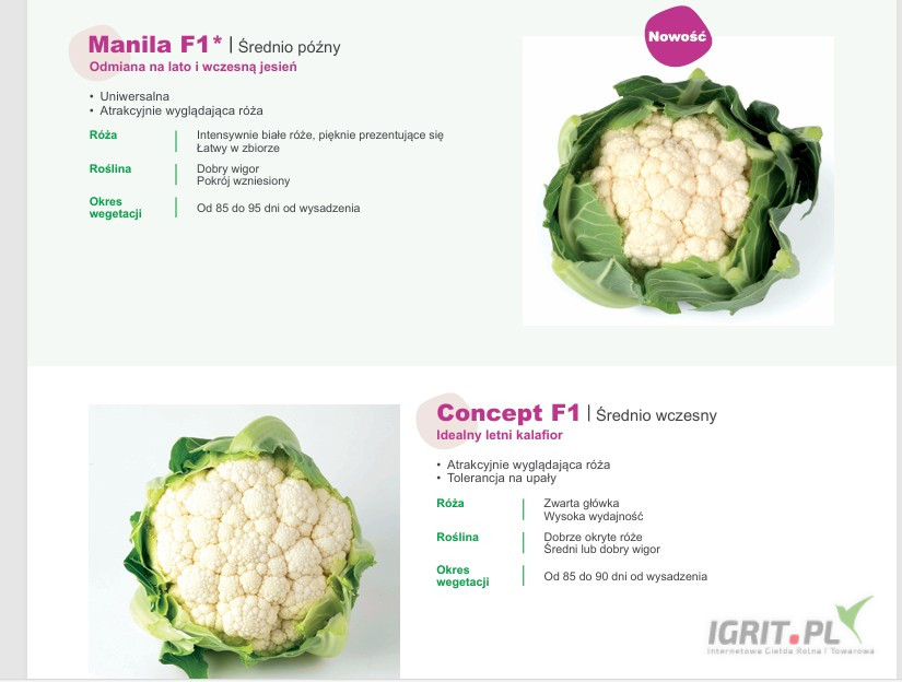 NASIONA kalafiora firmy SAKATA. Odmiany: Concept F1(j.2 500n) , Merton , Manila , Alston , Nairobi , White Magic , ENZA ZADEN - Certeza , Chione ,Elintos ,Moonshine , Xenia ofeuje GEPWEG dystrybutor n...