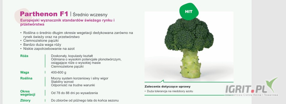 Parthenon F1(j.2 500n) , Naxos F1 , Triton F1 ,Tinos F1 NASIONA brokuła firmy SAKATA oferuje GEPWEG dystrybutor nasion. Dostawa gratis. Płatność przy odbiorze. Szukasz innych odmian - napisz lub zadzw...