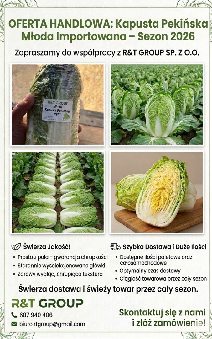 Zaczynamy kolejny sezon 2026 r. - Kapusta pekińska młoda importowana. Zapraszamy do współpracy!