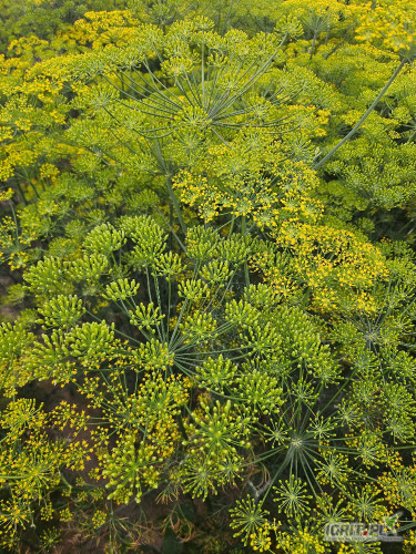OpisKoper z ziarnem, z kwiatem.