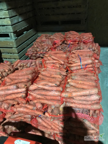 Marchew handlowa na brudno układana. Obecnie 120 workow ułożone. Kal 2.5-5.