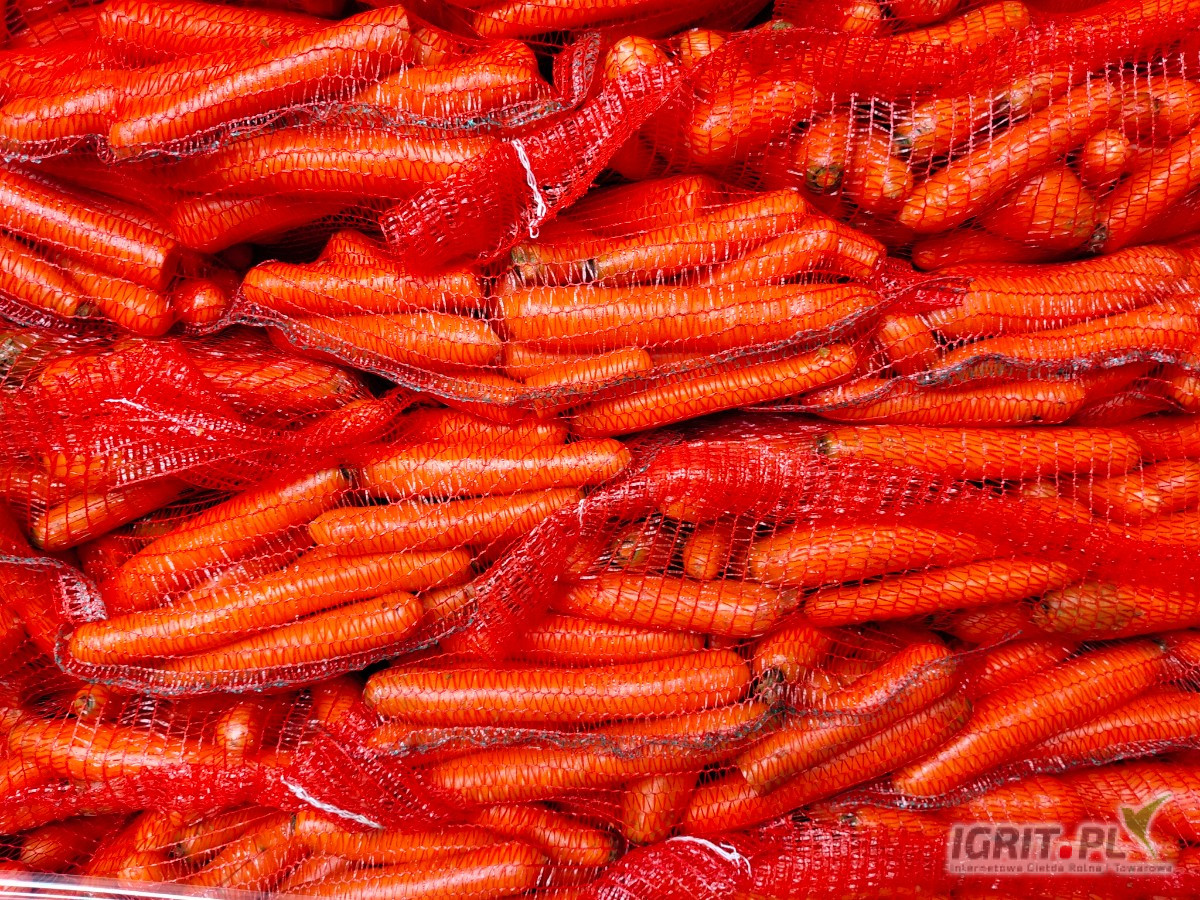 Marchew myta szczotkowania w worku szytym możliwość nadruku na szarfie.
