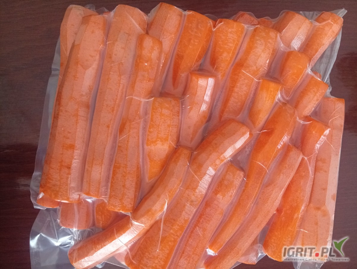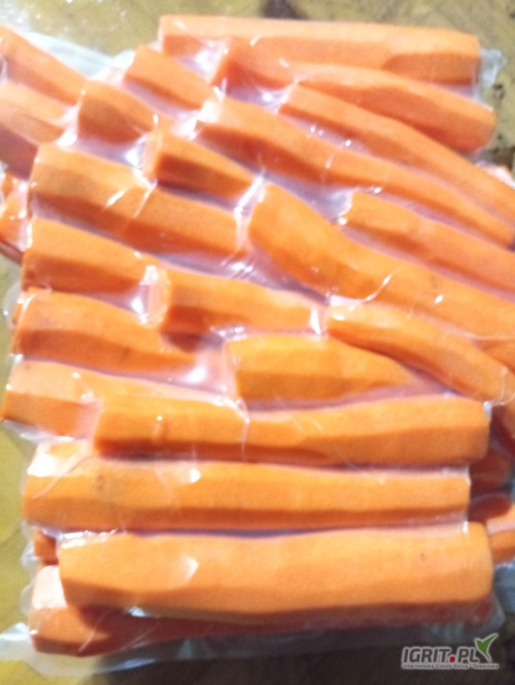 OpisMarchew obierana i pakowana próżniowo vaccum w workach foliowych po 5 kilogramów, marchew pakowana jest dzień przed terminem zamówienia.
