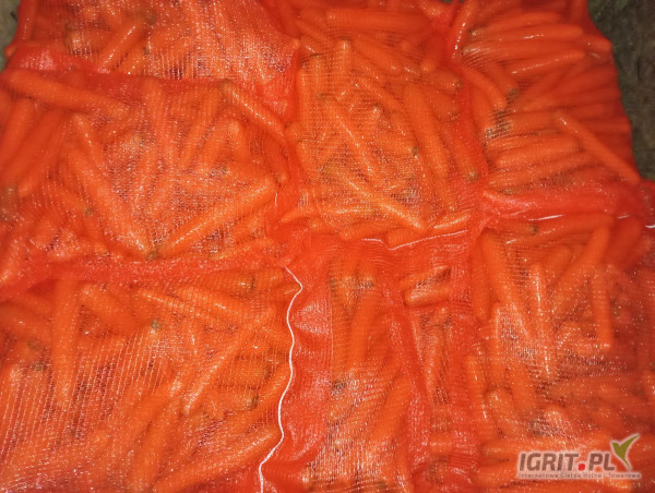 OpisSprzedam ładną mytą marchew po szczotkarce, worek zaszywany, ilości paletowe. Mozliwa faktura VAT.