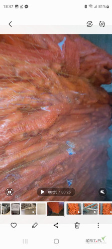 OpisSprzedam marchew myta i pakowana w Holandii kaliber 2-4 worek 10 kg po 1200 kg na palecie. Marchew nie zmienia sie po umyciu , zapraszam małych i dużych odbiorców.