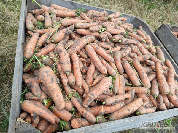 Sprzedam marchew świeżo kopana za nać, brudna, lub może być też myta, worek 10 -15 kg lub big bag, luz. Różny kaliber duże ilości 100 Ton. tel. 788-904-812