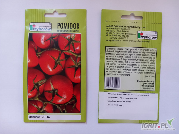 Sprzedam nasiona torebkowe pomidora pakowane w różnych ilościach (g lub szt.) Odmiany zgodne z załączonymi zdjęciami: - Julia, Bruno, Octawian, Remiz, Perkoz, Bekas, Słonka, Tukan, Pelikan ...