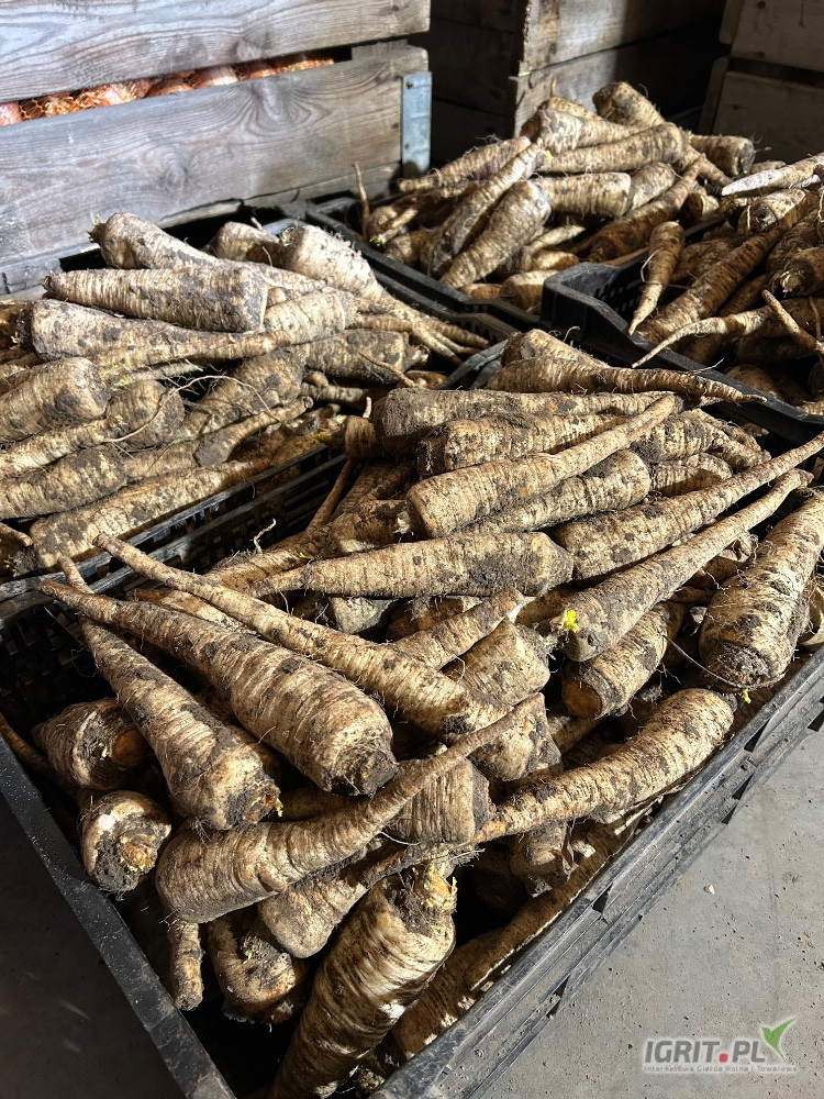 Pietruszka brudna kaliber handlowy jedna partia na tą chwilę z przechowalni ilość 1.5 tony a reszta około 3-4 ton w polu w kwietniu będzie kopana