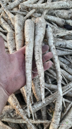 Sprzedam pietruszke Arktica i Arat towar ladny zdrowy nie przerosniety na przechowalnie biała gladka dluga z czarnej ziemi do kopania za tydzien w skrzynie na zamowienie.