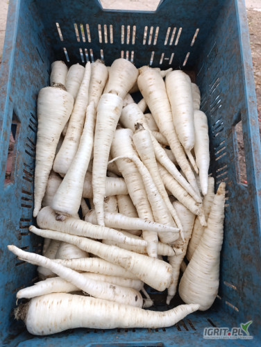 Sprzedam pietruszkę brudną, pietruszka z chłodni. Pietruszka z Rędziny, biała po umyciu, Zdrowa. Sprzedaż w skrzyniopaletach po wstępnym przebraniu, posiadam wagę na skrzynię. Zdjęcie Pietruszki po um...