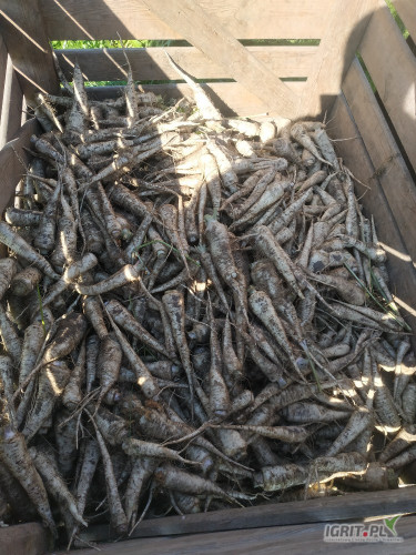 Sprzedam pietruszkę odmiany Arat ładna długa kopana reczenie ok 12 ton nadająca się do mycia jak i na brudno kaliber 3-6 a także gruba