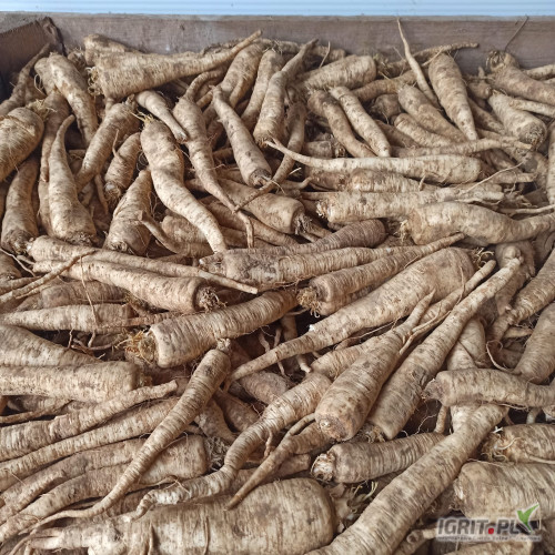 Sprzedam pietruszkę odmiany Arctica, brudna lub myta po szczotkarce kaliber 2.5-6. Pakowane w skrzyniopalety, big bag lub worek raszlowy. Dobrze się myje.