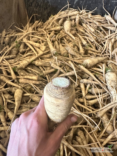 Sprzedam pietruszkę towar handlowy zbierany ręcznie, biała po umyciu, z lekkiej ziemi.