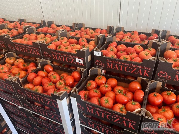 Producent sprzeda polskiego pomidora czerwonego BB, BBB. Karton z logo, 6 kg, układany