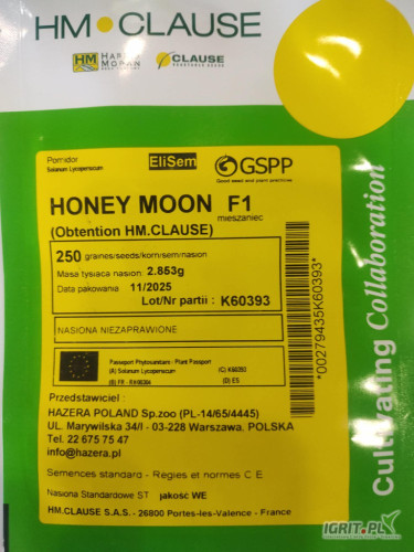 Sprzedam świeże nasiona pomidora Honey Moon opakowania 250n Pomidor malinowy o wzroście ciągłym zalecany pod osłony Wyjątkowy smak malinowego pomidora Owoc okrągły, wyrównany, lekko spłaszczony, delikatnie ożebrowany, dość twardy, bardzo mała blizna poszypułkowa Waga około 250 – 300 g, ładny wyrównany różowy kolor Wczesny i plenny Roślina o średnim pokryciu liśćmi Roślina dobrze się zachowuje w nasadzeniach wiosennych w zimnych tunelach Tolerancja na zarazę ziemniaczana (Pi) Odporności: - HR: ToMV / Va:0, Vd:0 / Fol: 0,1 - IR : Pi / TYLCV