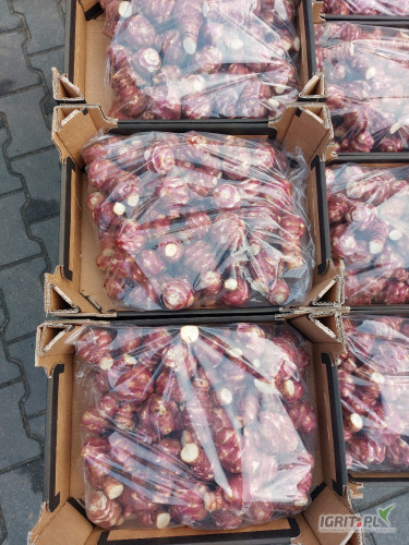 Sprzedam piękny różowy topinambur segregowany, myty, pakowany w 5kg worki.