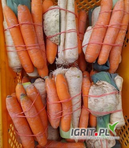 Włoszczyzna w pęczkach 1kg. Skład: seler, por, marchewka, pietruszka. natka. Wagę i skład przygotowujemy również wg. indywidualnego zamówienia. Na terenie woj. mazowieckiego i miasta Warszawy z dostaw...