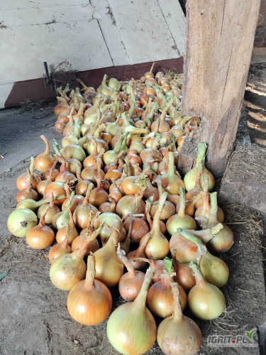 Sprzedam cebulę i ziemniaki cebula wolska około 400kg kaliber 4.5cm cena 2zl ziemniaki 2-3ton Soraya cena 1.5zl