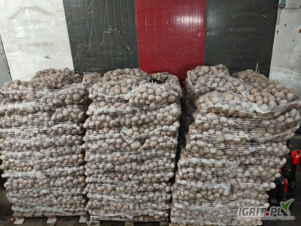 OpisSprzedam ziemniaki jadalne odmiany Rudolf podobne do Irgi czerwona skórka biały środek z jasnej ziemi sort 50+ na szykowane 4 palety po 80 worków 15kg