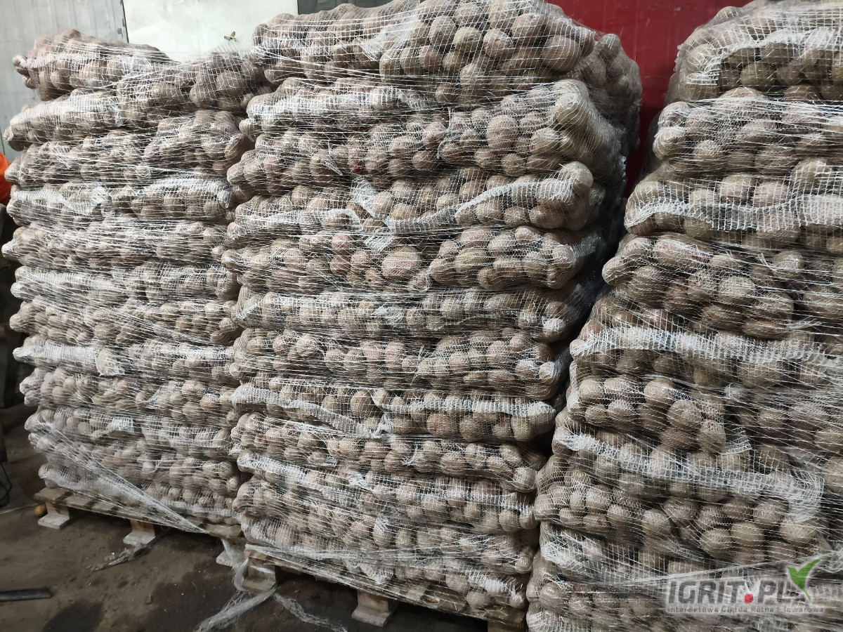 Sprzedam ziemniaki jadalne odmiany Rudolf podobne do Irgi czerwona skórka biały środek z jasnej ziemi sort 50+ na szykowane 4 palety po 80 worków 15kg