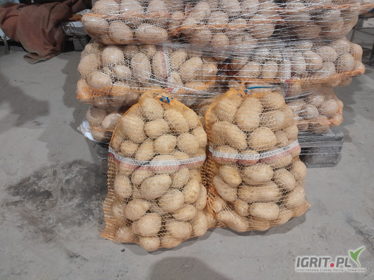 Sprzedam ziemniaki odmiana obama soraya z jasnej ziemi kal 5+, naszykowane jest 10 palet po 70 worków możliwość naszykowania całego tira.