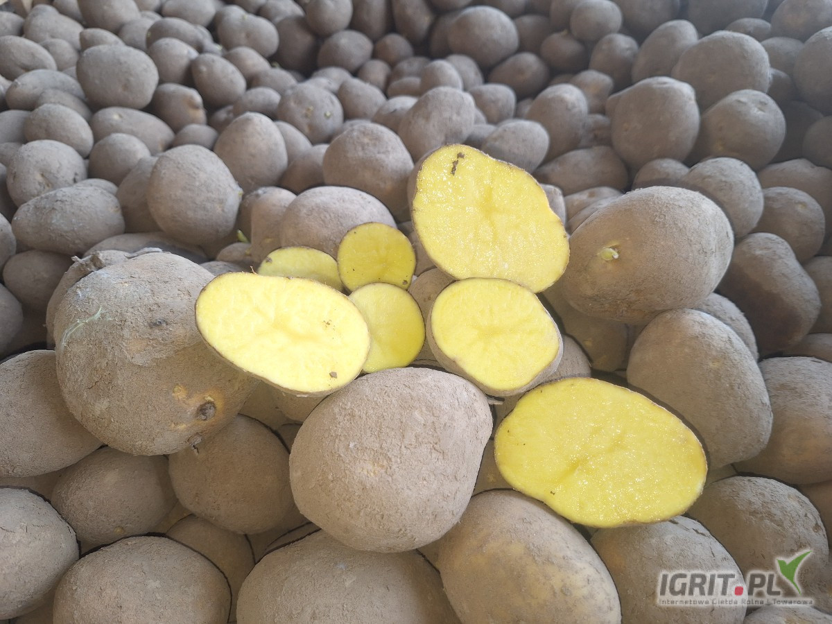 Sprzedam ziemniaki odmiana Owacja żółta skórka kremowy w środku. Kaliber 50+ posiadam 100 ton Opakowanie big bag