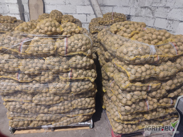 OpisWitam. Posiadam na sprzedaż 8 ton świeżo przerobionego ziemniaka i zapakowanego w 15kg. woreczki. Odmiana GALA, kal.+45. Ziemniak na paletach po 67 worków (1tona). Cena 1zł./kg.
