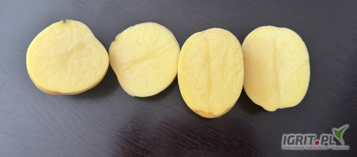 Charakterystyka: Odmiana bardzo wczesna, o jasnożółtym miąższu i gładkiej skórce.