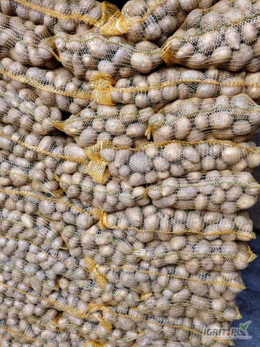 Ziemniaki GALA z jasnej ziemi szczotkowanie w worku szytym możliwość nadruku na szarfie.