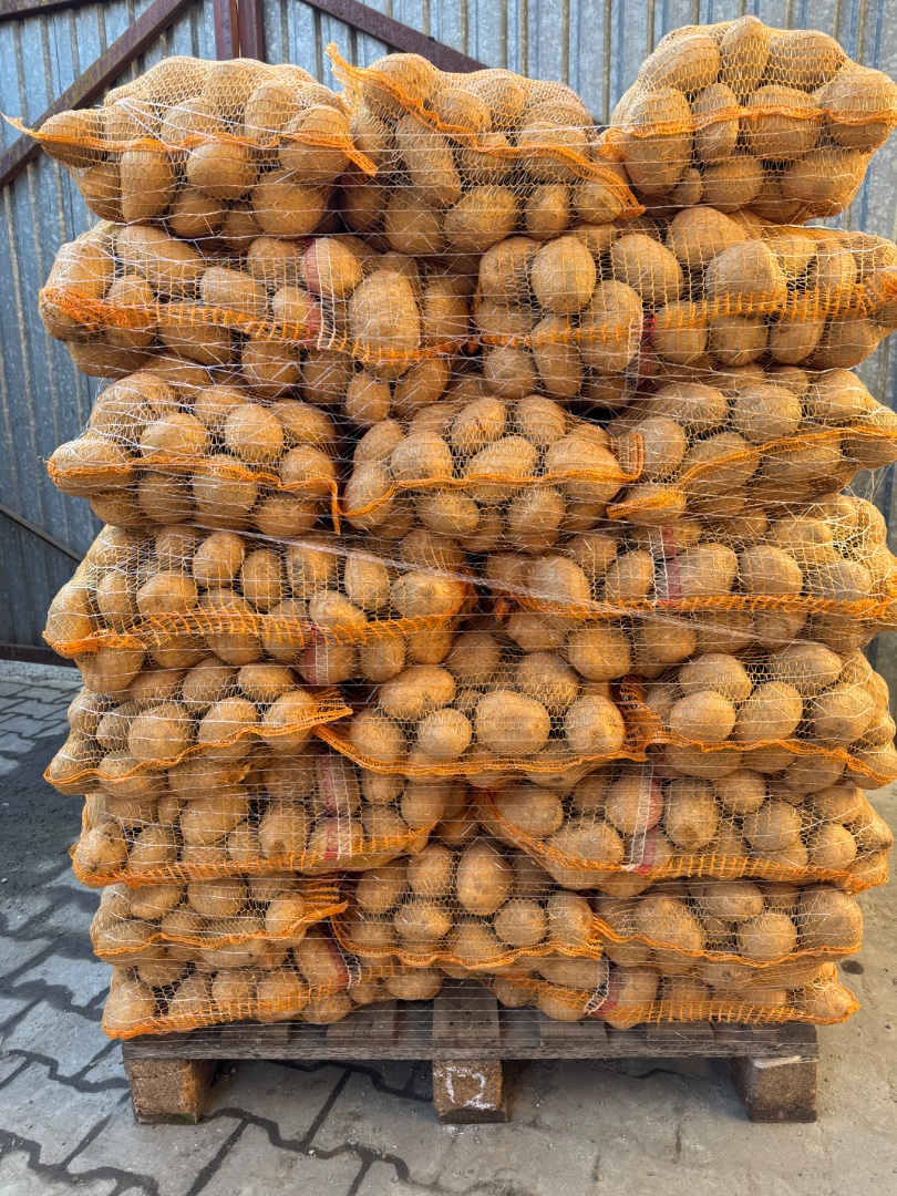 Ziemniaki odmiany Tajfun w kalibrażu 50+ pakowane w worki 15kg ułożone na palecie i osiatkowane, lub bez palety.