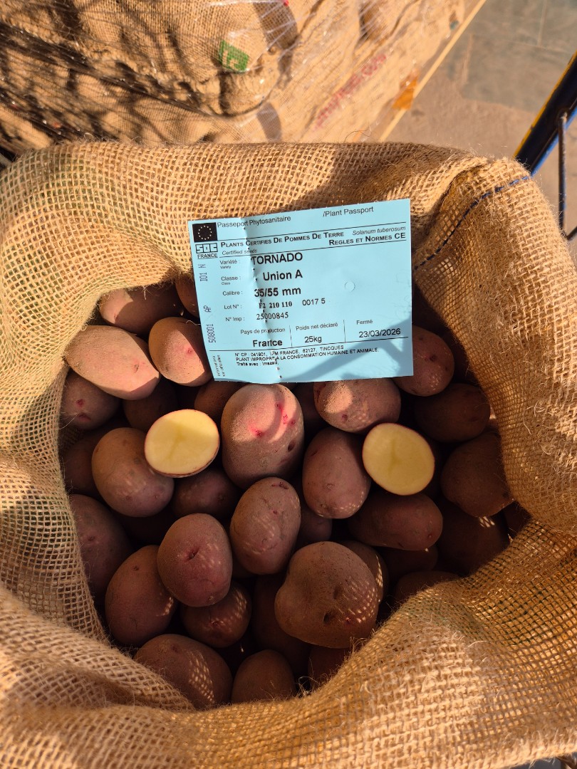 SPRZEDAM SADZENIAKI CZERWONE podłużne w środku jasny krem odm. TORNADO kal. 35/55 Klasa. A Paszport. Ciechanów tel. 608593773