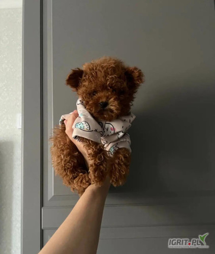 Opis8-week-old toy poodle puppies are typically small, weighing around 3 to 4 pounds. At this age, they are lively, curious, and full of energy, but still very dependent on their mothers or human caregivers for comfort and support. Their coat is soft, silky, and gradually develops into the distinctive, long, flowing coat that poodles are known for. The coat color is usually a combination of beige and blue steel, with blue darkening over time. These puppies are beginning to explore their surroundings and can begin basic toilet training, although they still need a lot of attention and care. Their personalities are often sweet and affectionate, and they can be playful and eager to bond with their new owners. Because of their small size, they require extra care to avoid injury.