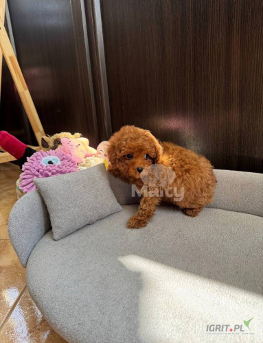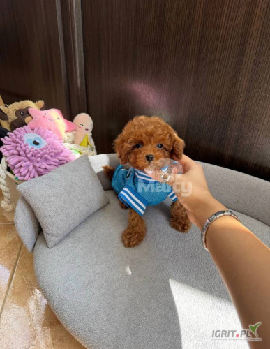 Opis8-week-old toy poodle puppies are typically small, weighing around 3 to 4 pounds. At this age, they are lively, curious, and full of energy, but still very dependent on their mothers or human caregivers for comfort and support. Their coat is soft, silky, and gradually develops into the distinctive, long, flowing coat that poodles are known for. The coat color is usually a combination of beige and blue steel, with blue darkening over time. These puppies are beginning to explore their surroundings and can begin basic toilet training, although they still need a lot of attention and care. Their personalities are often sweet and affectionate, and they can be playful and eager to bond with their new owners. Because of their small size, they require extra care to avoid injury.