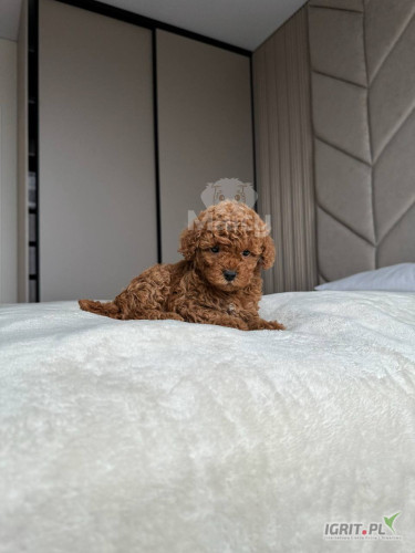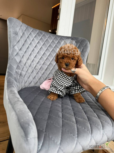 Opis8-week-old toy poodle puppies are typically small, weighing around 3 to 4 pounds. At this age, they are lively, curious, and full of energy, but still very dependent on their mothers or human caregivers for comfort and support. Their coat is soft, silky, and gradually develops into the distinctive, long, flowing coat that poodles are known for. The coat color is usually a combination of beige and blue steel, with blue darkening over time. These puppies are beginning to explore their surroundings and can begin basic toilet training, although they still need a lot of attention and care. Their personalities are often sweet and affectionate, and they can be playful and eager to bond with their new owners. Because of their small size, they require extra care to avoid injury.