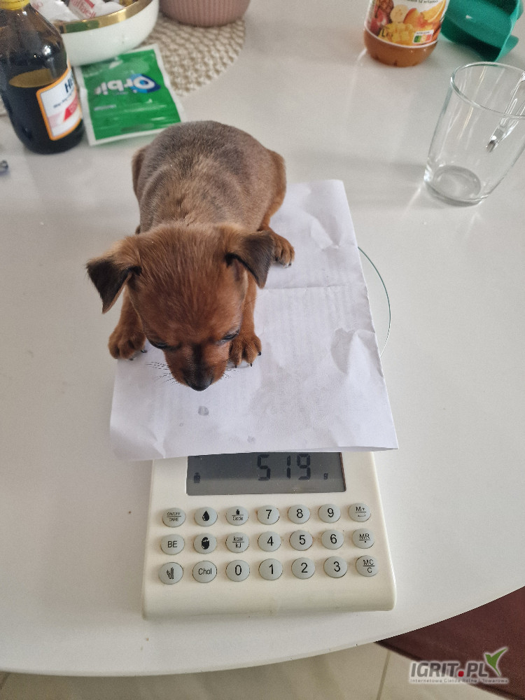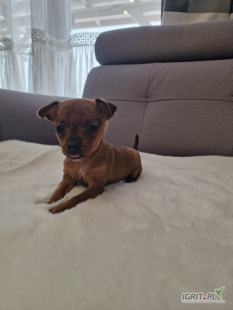 OpisPinczerek miniaturowy in. zwane ratlerkiem/ sarenka, urodzona 16.12.2025r. (Waga docelowa to 1600g.Pinczerek miniaturowy in. zwane ratlerkiem/ sarenką, urodzona 16.12.2025r. (Waga docelowa to 1600-1700g). Rodzice mama ruda ok 1.8kg, tata 2,2kg czarno podpalany ROXI to bardzo wesoła i radosna suczka, ciekawa świata i chętna do zabawy. W razie pytań proszę dzwonić. Przy odbiorze będzie już 2 razy odrobaczona i zaszczepiona. Posiada książeczkę zdrowia, metrykę urodzenia. Nadmieniam, iż pieski są zdrowe, bez wad genetycznych Każdemu nabywcy służymy radą i pomocą. Osoby zainteresowane nabyciem szczeniaka zapraszam do rozmowy telefonicznej Ważne z braku czasu nie odpowiadam na SMS, tylko rozmowa telefoniczna 503 146 751