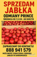 SPRZEDAM JABŁKA ODMIANY PRINCE – 60 skrzyń, cena 1zł za wagę w skrzyni Oferuję świeże, dorodne jabłka odmiany Prince o średnicy od 7,5 cm wzwyż. Jabłka z tegorocznych zbiorów, idealne do sprzeda...